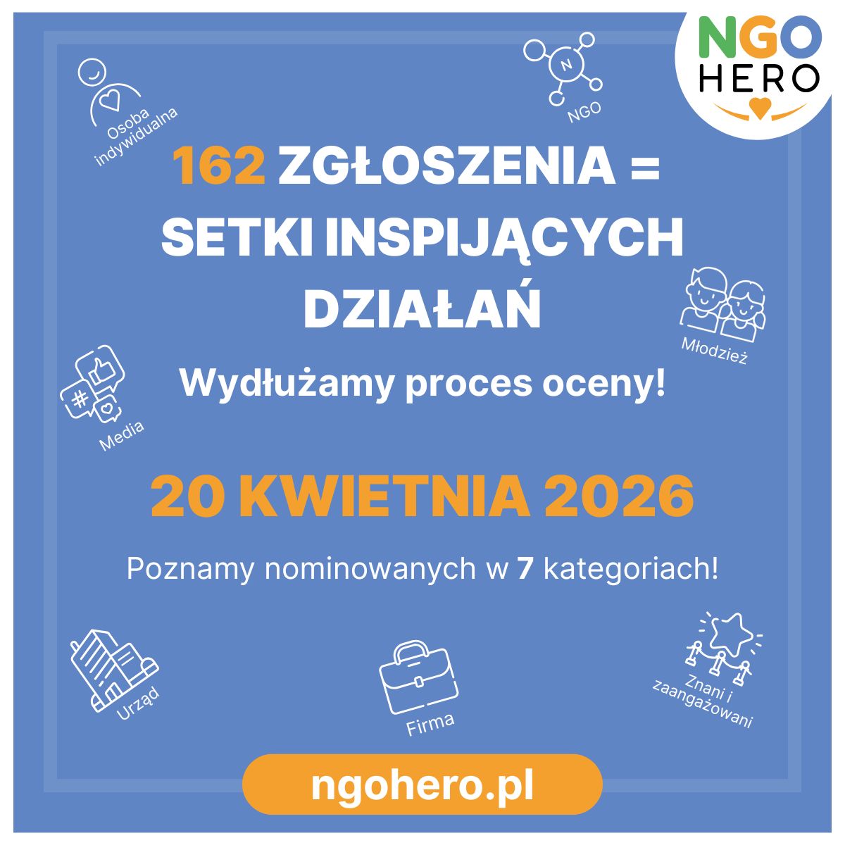 W tym roku otrzymaliśmy w Konkursie NGO Hero aż 162 zgłoszenia prawdziwych bohaterów. Każde z nich pokazuje prawdziwe zaangażowanie, historie i chęć realnej zmiany. Jesteśmy ogromnie wdzięczni, że możemy poznać tak wiele inspirujących historii oraz działań, które dzieją się w całej Polsce.